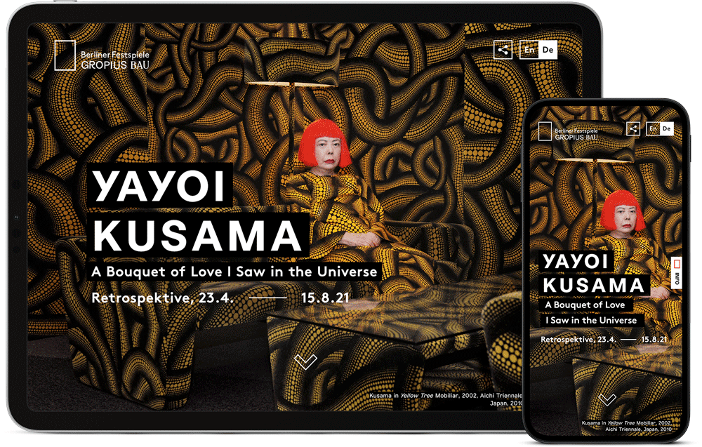 Interaktiver Ausstellungsguide zur Yayoi Kusama Retrospektive “A Bouquet of Love I saw in the Universe” im Gropius Bau Berlin.